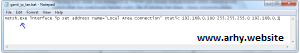 anda buka notepad dan masukan perintah setting ip lan yang di atas tadi. lihat gambar